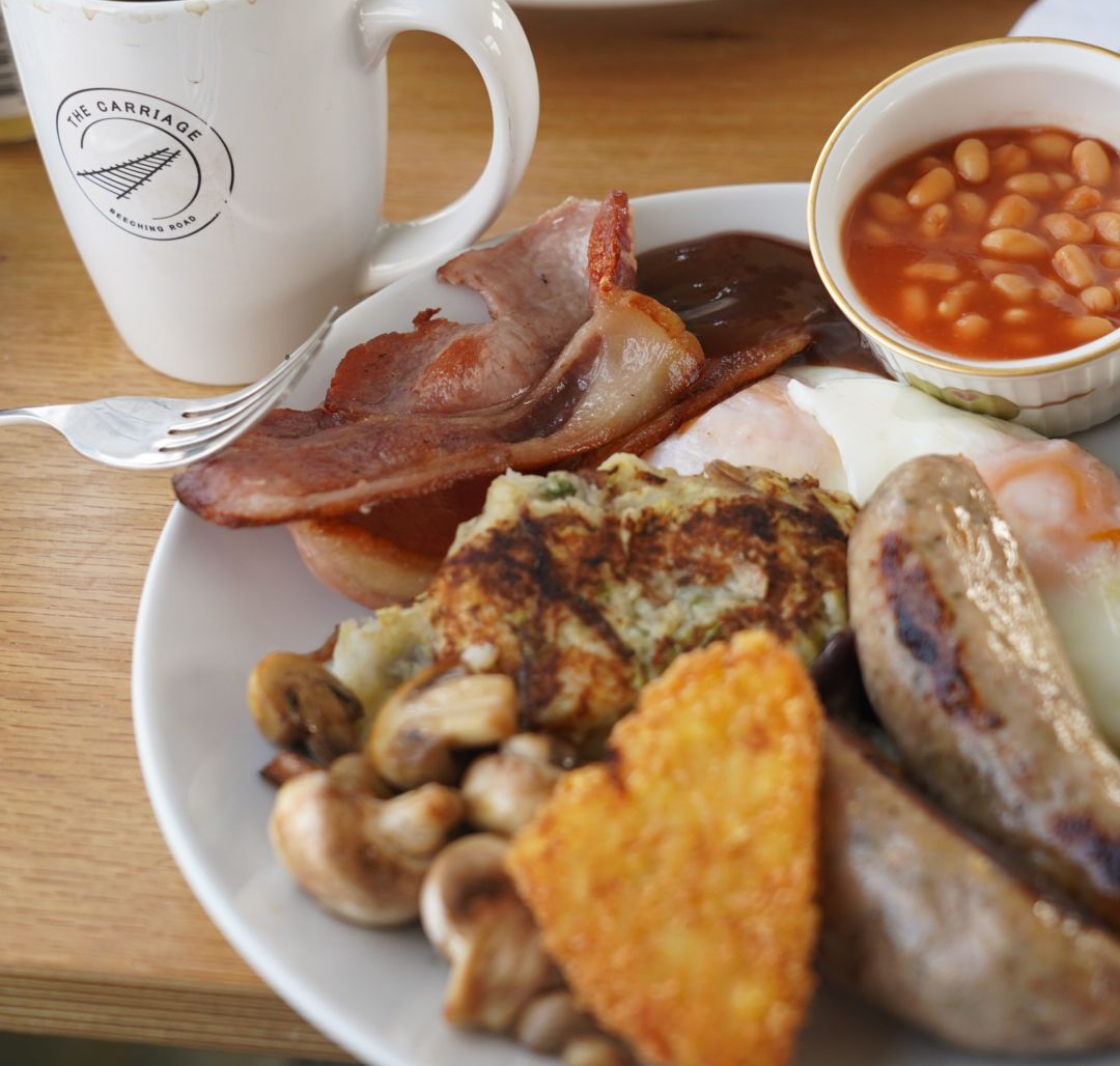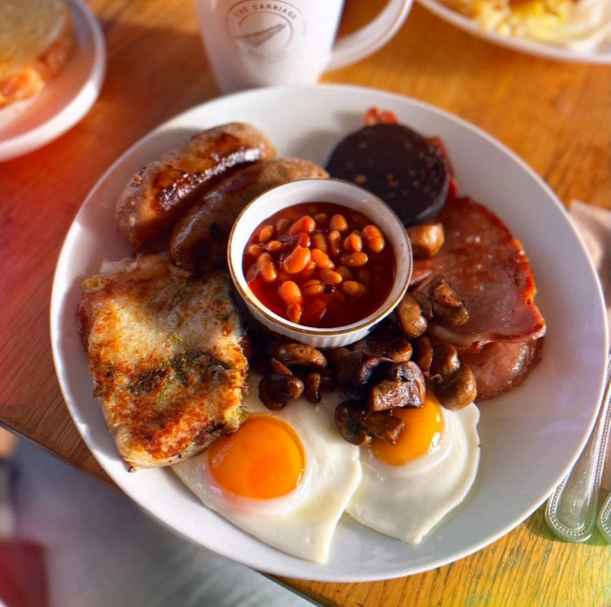 The Carriage specializes in hearty café fare, perfect for breakfast, brunch, or lunch. With a menu that embraces both traditional and innovative dishes, there's something for everyone. Start your day off right with the Main Line breakfast (£10.00)—a sumptuous feast of bacon, sausage, eggs, beans or tomatoes, black pudding, hash browns, and mushrooms, all beautifully plated to tantalize your taste buds. For those seeking a vegan option, the Vegan breakfast (£12.00) offers an enticing mix of smokey borlotti beans, scrambled tofu, grilled tomatoes, mushrooms, and hash browns, ensuring no one feels left out.